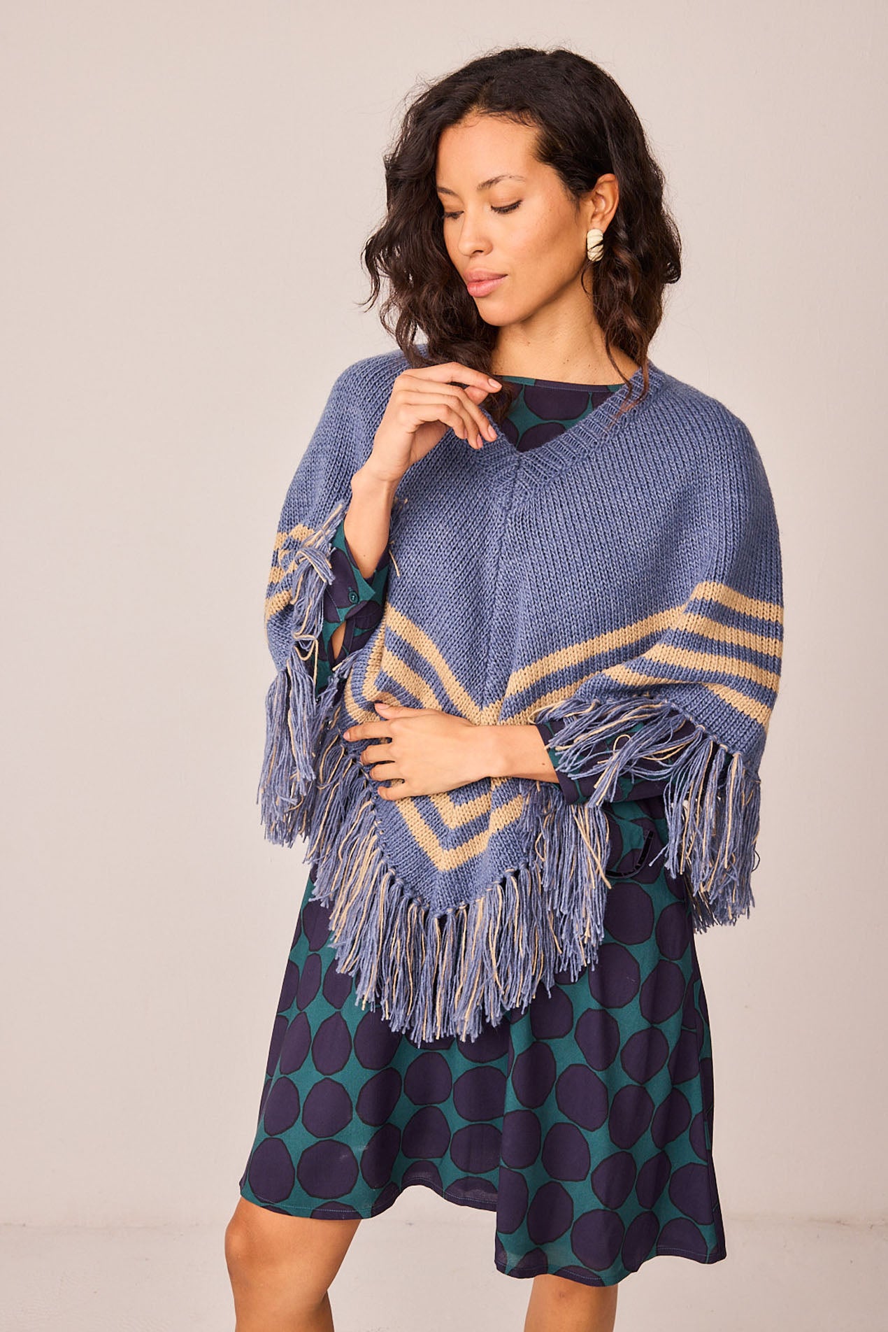 Ein Poncho mit V-Ausschnitt und Fransen passt perfekt zu jedem Kleid oder Rock von Smile und verleiht ihm eine einzigartige Note.
