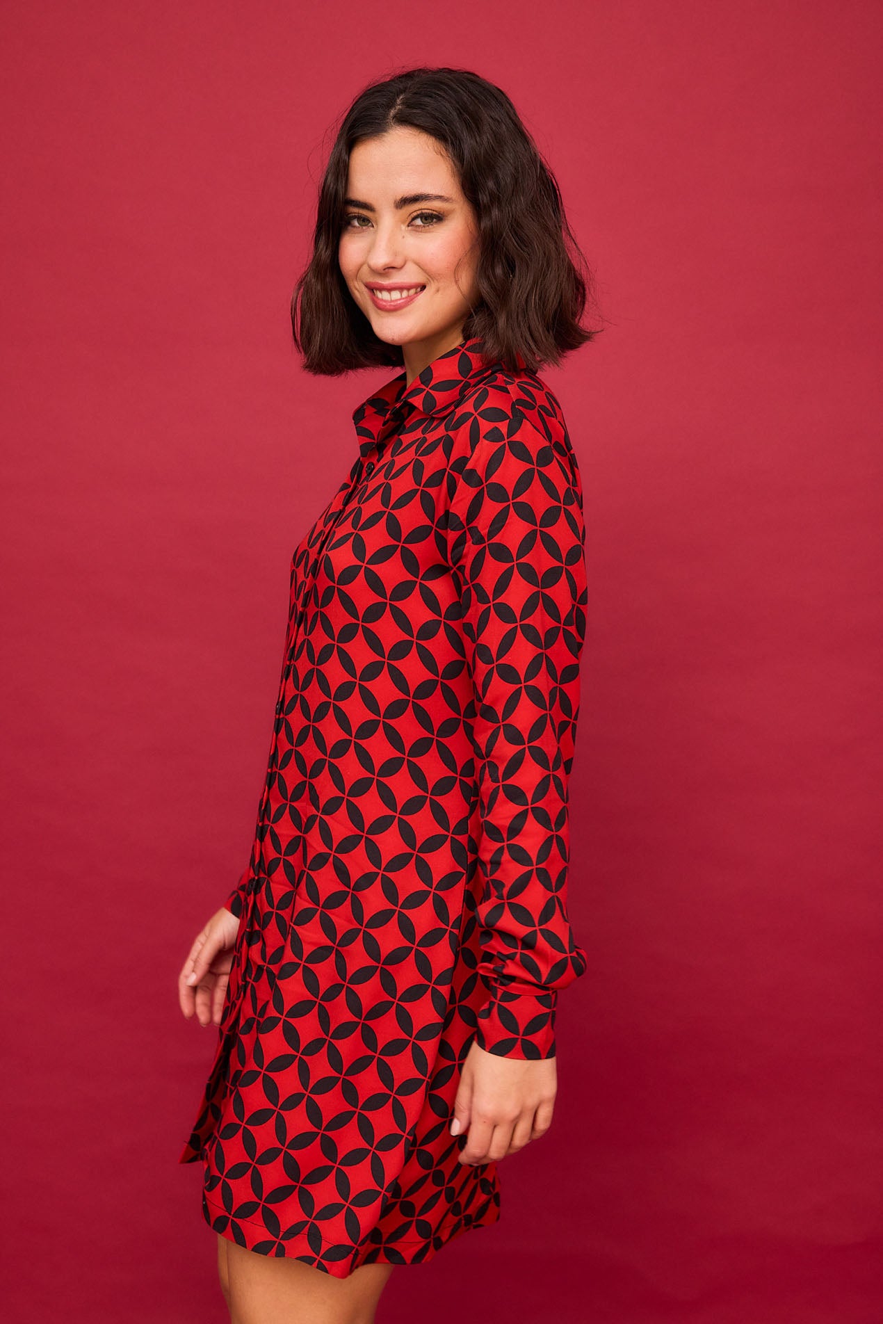 Kurzes Hemdblusenkleid-Konzept, Sie können es auch mit Hosen tragen, was auch toll aussieht.