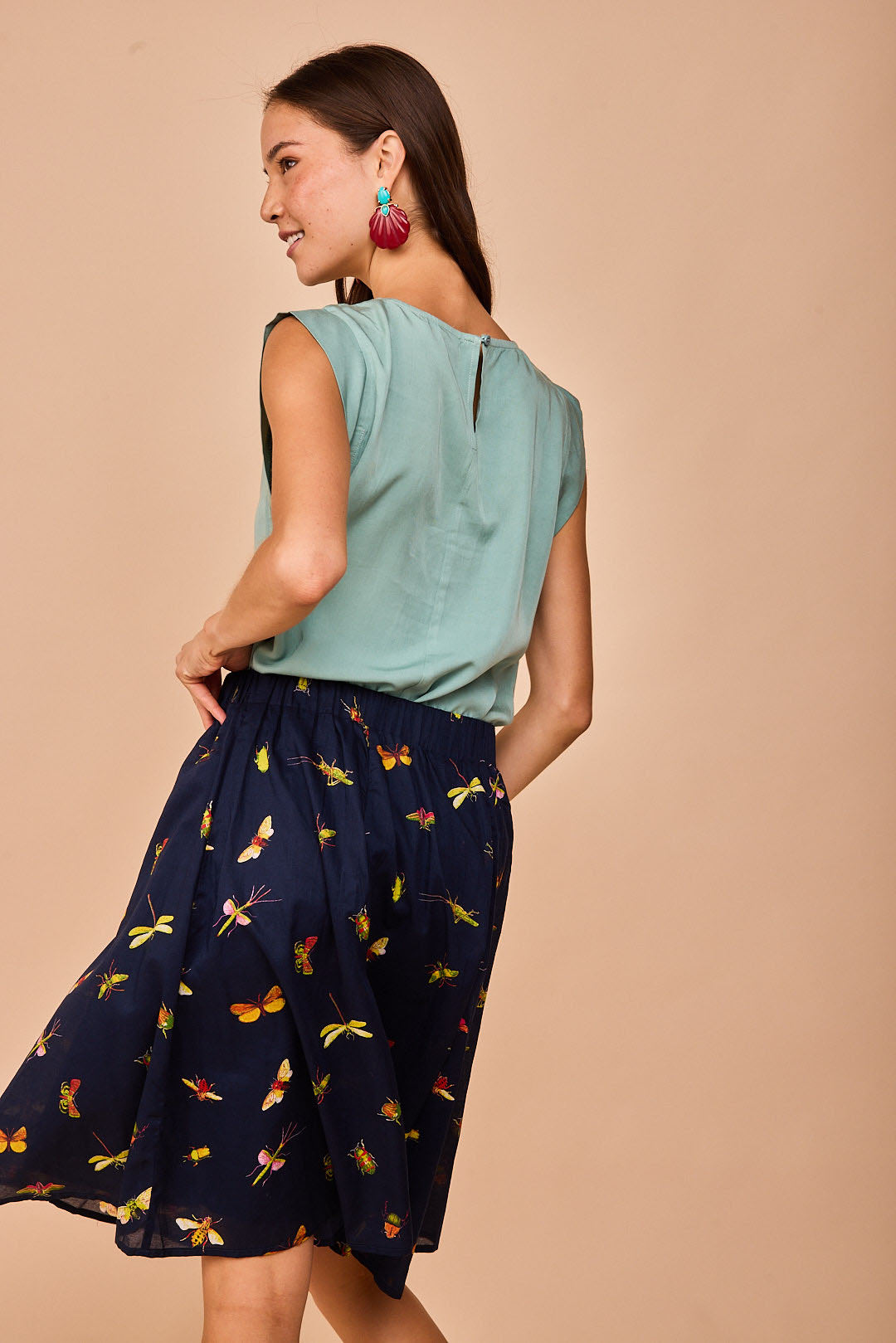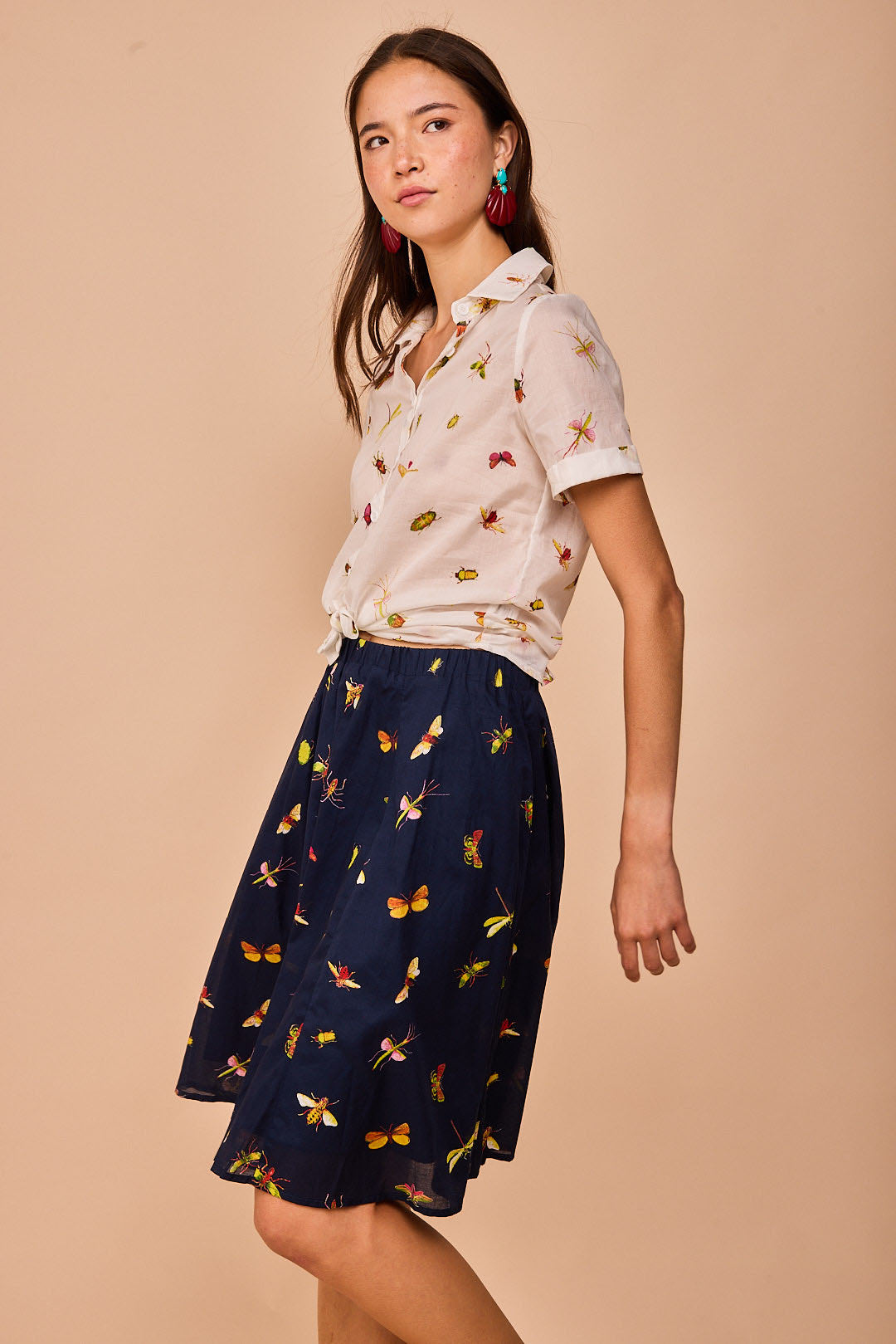 Falda con vuelo y fresquita, lleva cinturilla. Queda monisima, y vas a estar comodísima! Forrada con forro de algodón