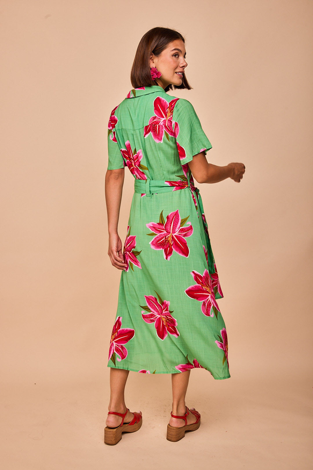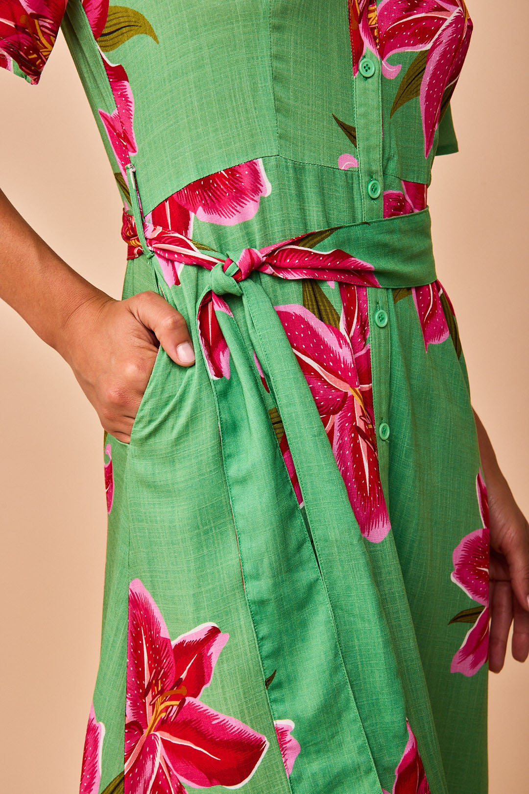 Camisero hawaiano que sienta como un guante!! Cuello pico y cuellos, cinturón a juego de la tela!