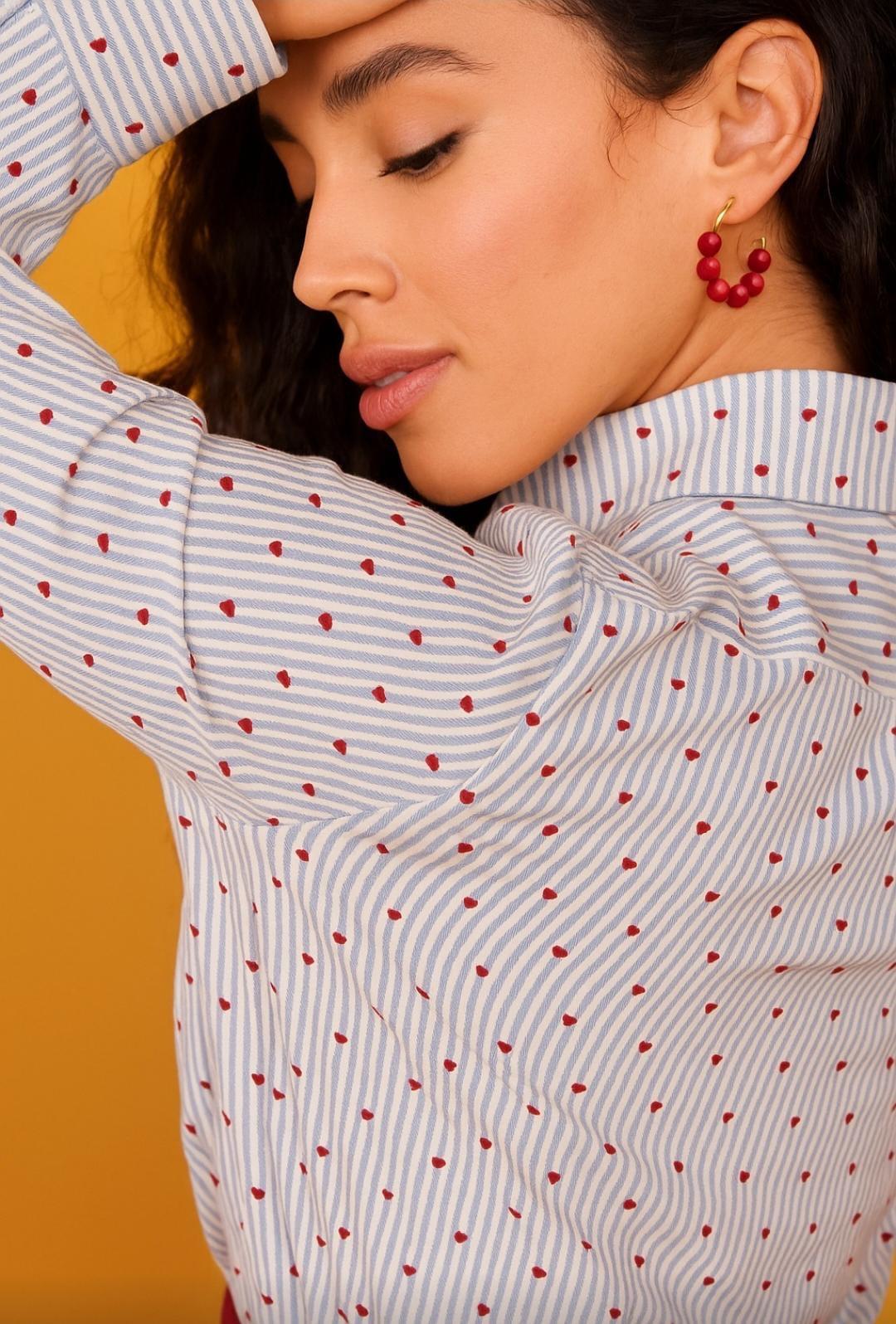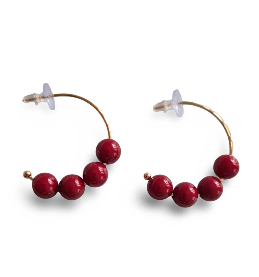 Estos fantásticos aros son de acero y cuentan con un diseño muy simpático quedan super bonitos, aro dorado con bolitas rojas de resina, el diámetro es de 3,5 cms