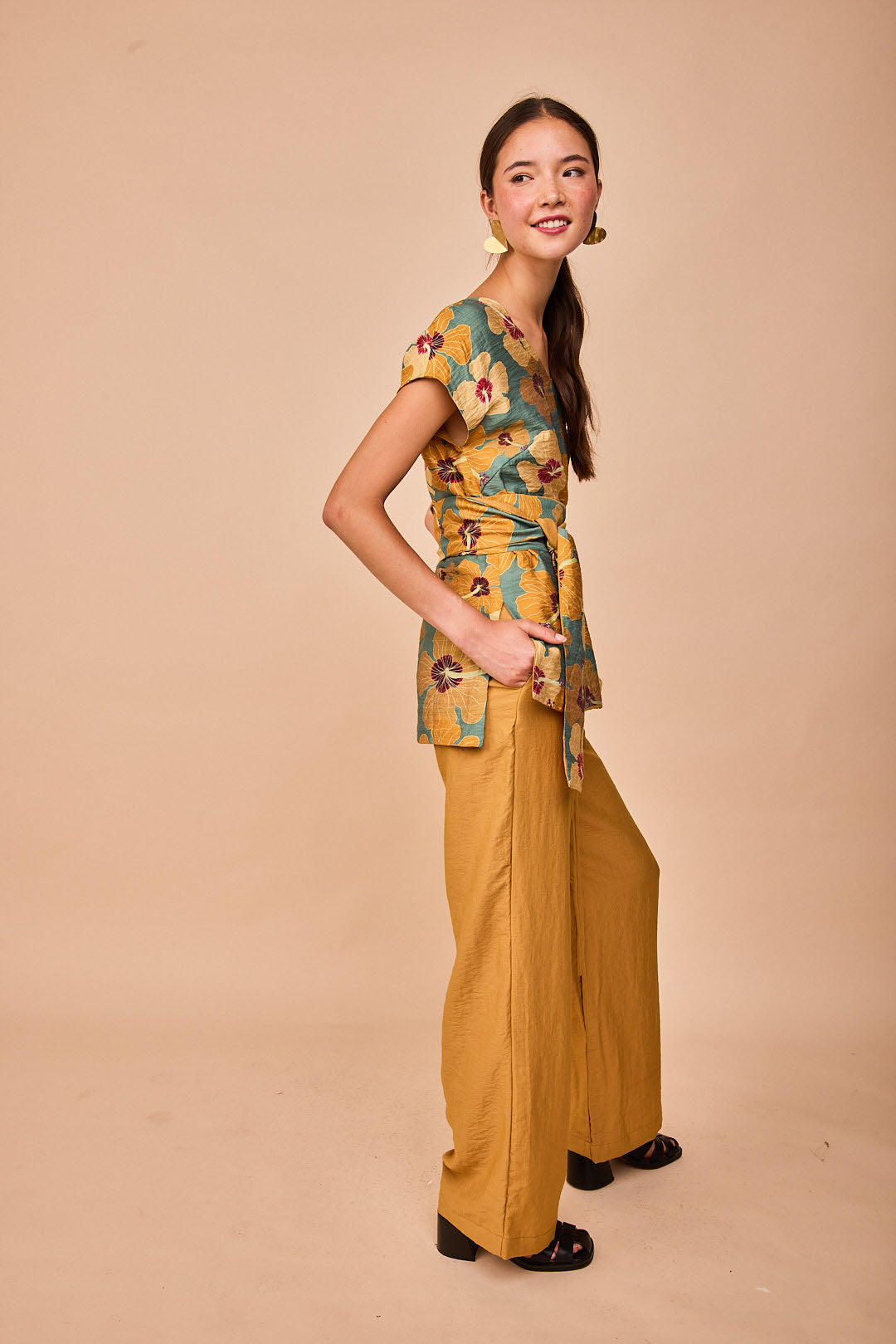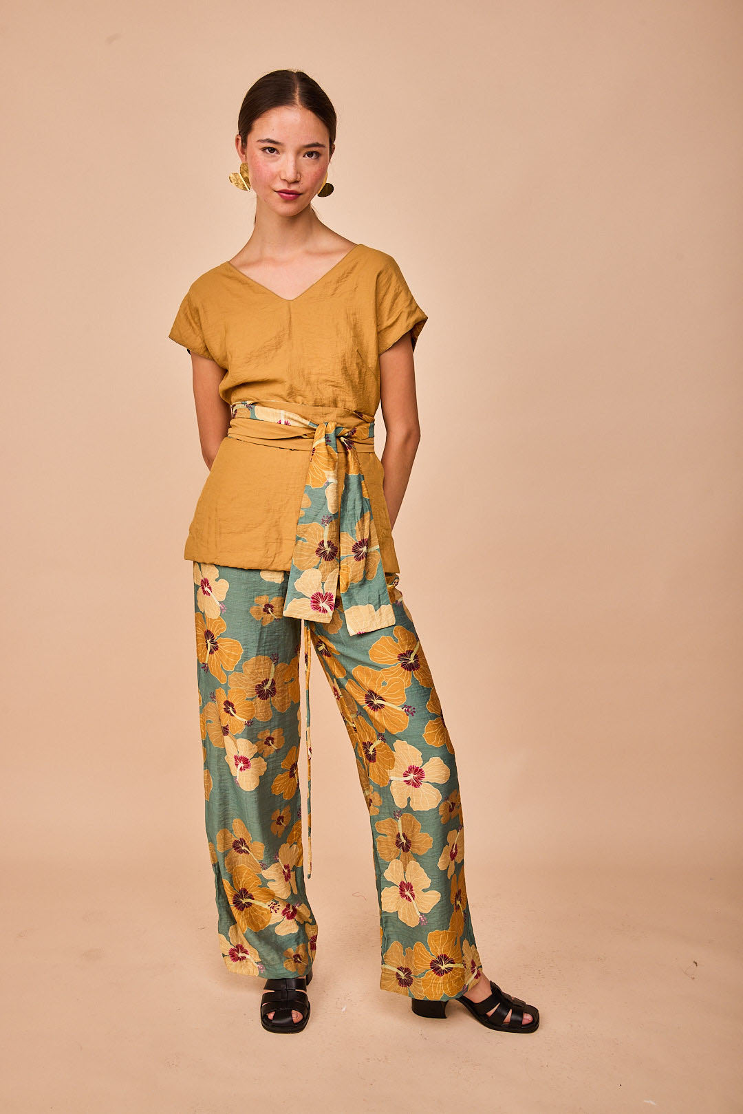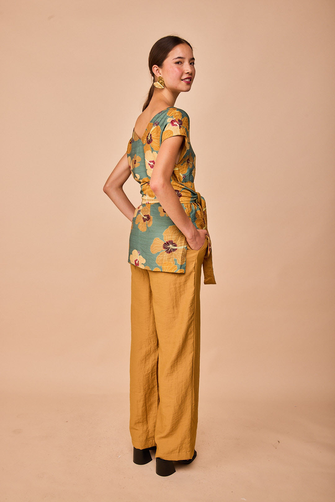 Top reversible,m estampado magnolia por un lado y dorado por el otro, nos encanta!! Super divertido, con el pantalon arnia tanto flor como dorado queda precioso!!