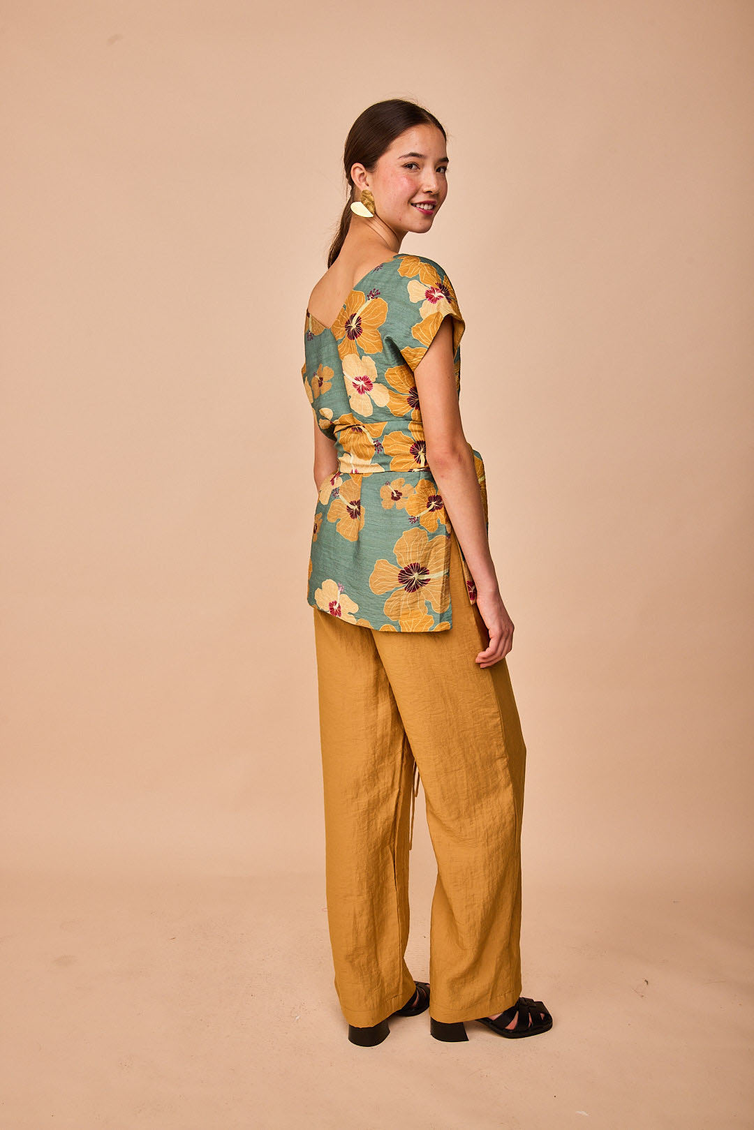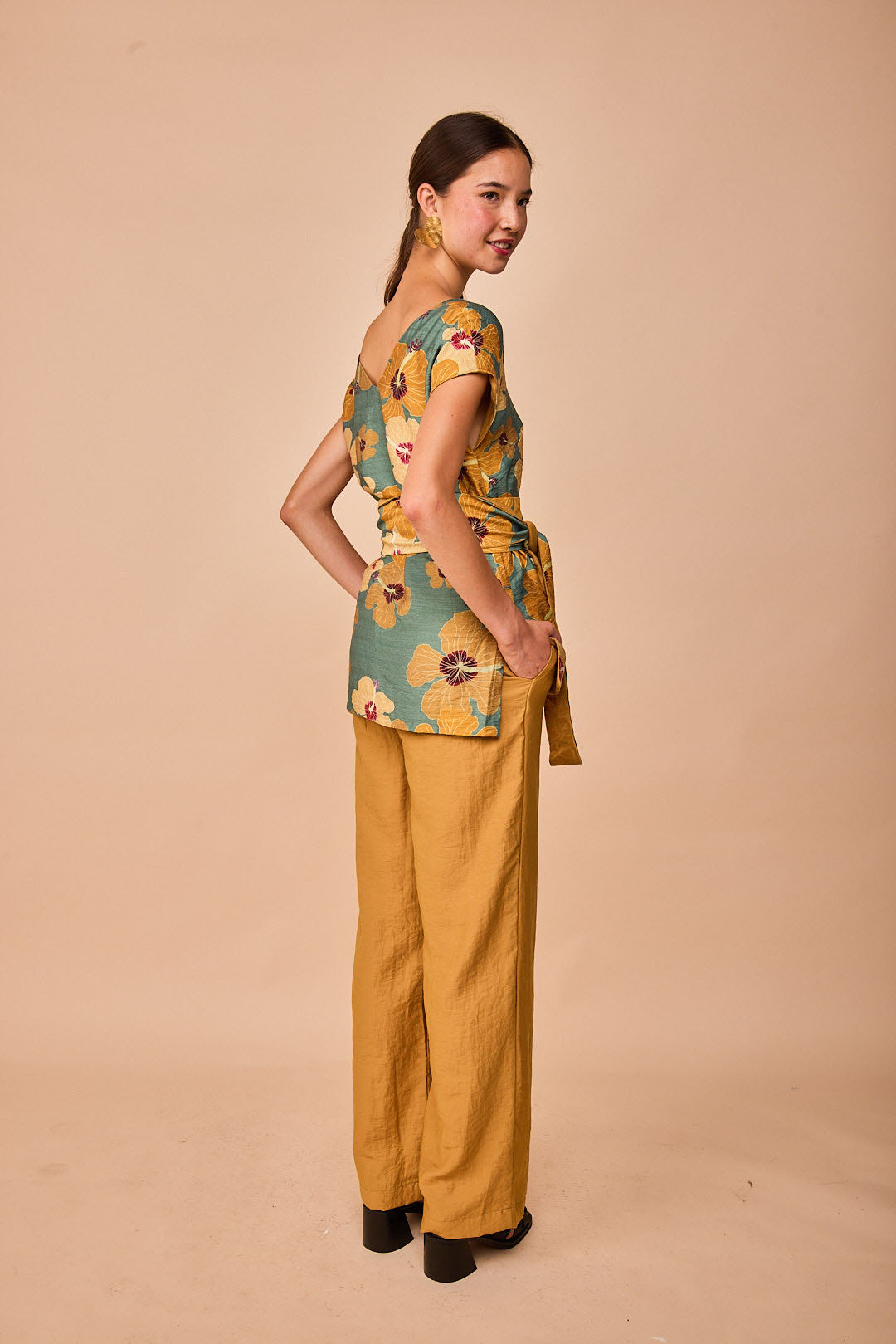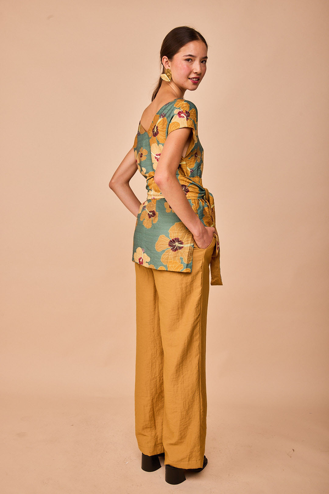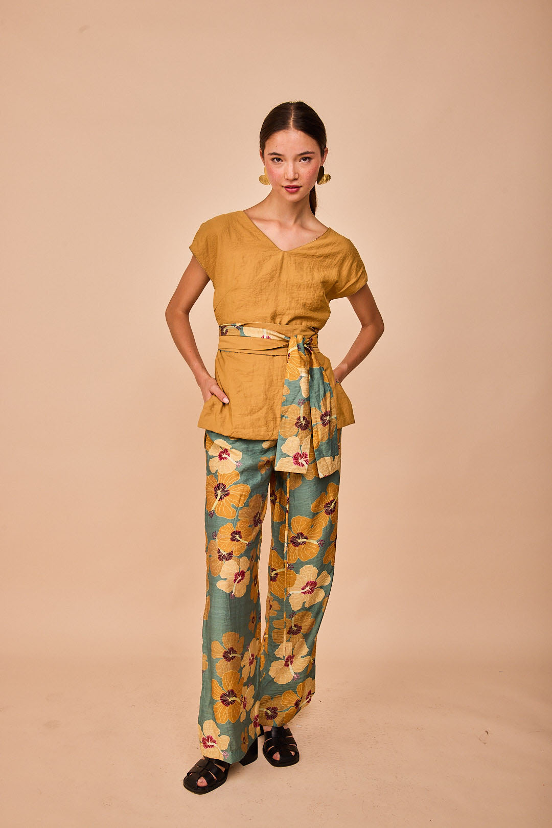 Top reversible,m estampado magnolia por un lado y dorado por el otro, nos encanta!! Super divertido, con el pantalon arnia tanto flor como dorado queda precioso!!