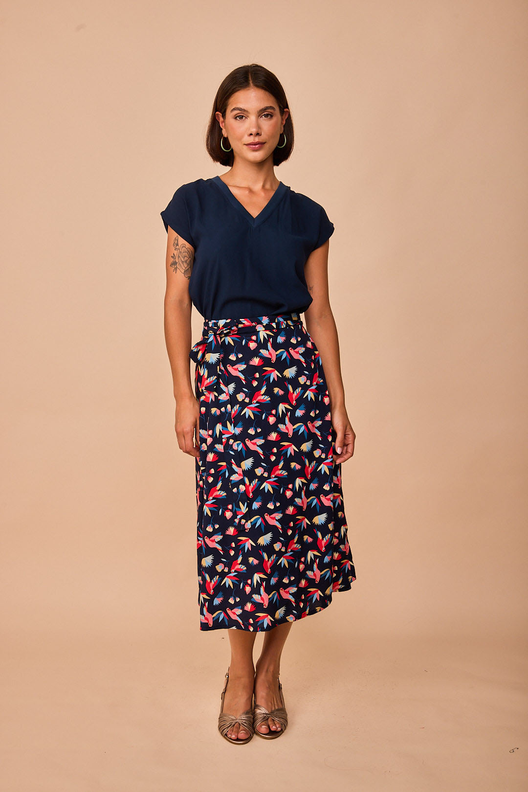 Top de viscosa con escote en pico y liso, es sencillo pero tiene rollo para combinarlo con cualquier parte de abajo estampada de SMILE